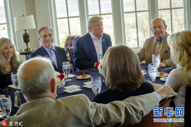 当地时间2017年3月11日,美国弗吉尼亚州,美国总统特朗普在其名下的特朗普国际高尔夫俱乐部与内阁成员和白宫职员共进工作午餐。(Pete Marovich POOL/东方IC)
