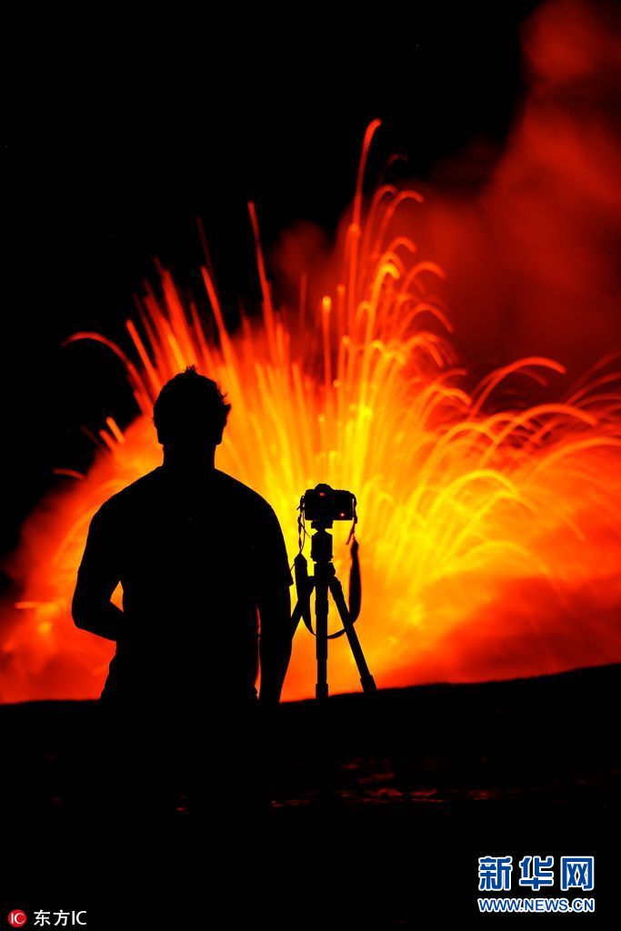 2017年4月24日报道(具体拍摄时间不详),一位不要命的摄影师用镜头记录下了岩浆流入大海与浪花相溶的震撼画面。照片中,岩浆从陆地流入海洋,海浪轻轻拍打着岩浆流。另一些画面中,熔岩流在水面下闪耀着橙色的光芒。此外,还有画面显示,黑夜中,火红的岩浆喷涌到夜空中,如同流淌的瀑布一般。