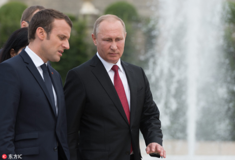 5月29日,马克龙在巴黎近郊的凡尔赛宫与普京会面。