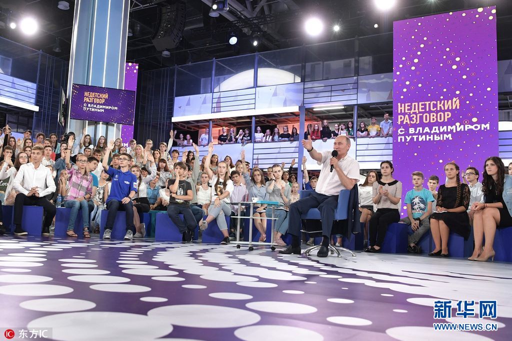 当地时间2017年7月21日,俄罗斯索契,俄罗斯总统普京造访“天狼星”教育中心,与“天才儿童”展开对话,回答孩子们提出的问题。(图片来源: 东方IC)