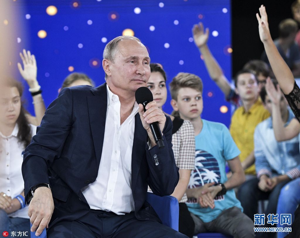 当地时间2017年7月21日,俄罗斯索契,俄罗斯总统普京造访“天狼星”教育中心,与“天才儿童”展开对话,回答孩子们提出的问题。(图片来源: 东方IC)