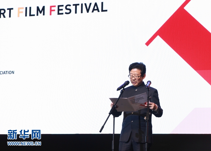 12月3日,中国海外交流协会宣传部部长许玉明致辞。当日,2017华时代全球短片节闭幕式暨颁奖典礼在北京天桥艺术中心举行。新华网发 巩阳摄