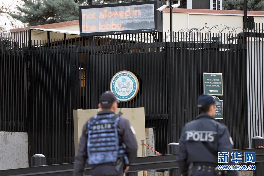 3月5日,在土耳其安卡拉,警察在美国驻土耳其大使馆外巡逻。美国驻土耳其大使馆3月4日晚宣布,考虑到安全问题,使馆对外服务临时关闭,并提醒在土美国公民避开人群密集区域,提高安全意识。新华社发(穆斯塔法·卡亚 摄)